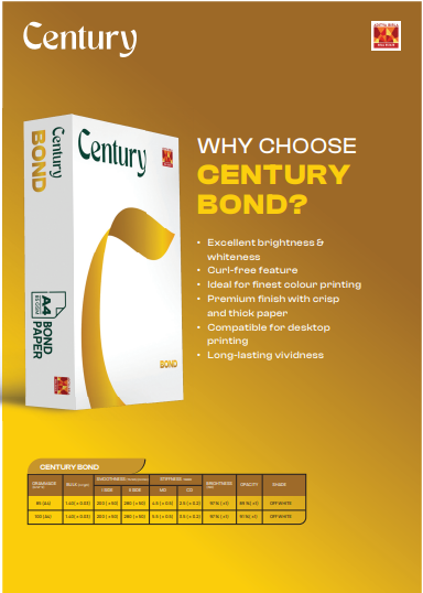 Century Utsav is designed for high-speed machines. It delivers superb printability with lower ink consumption, extending the life of your documents. Perfect for vibrant color printing, Century Utsav offers reliable brightness, ensuring your prints stand out with clarity and quality.